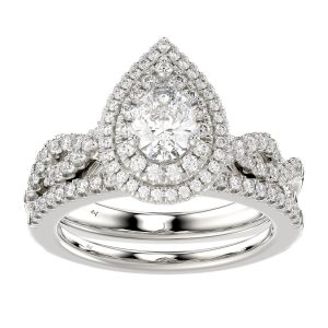 LADIES BRIDAL SET 1.15CT ROUND/PEAR DIAMOND 14K WHITE GOLD (SI QUALITY)